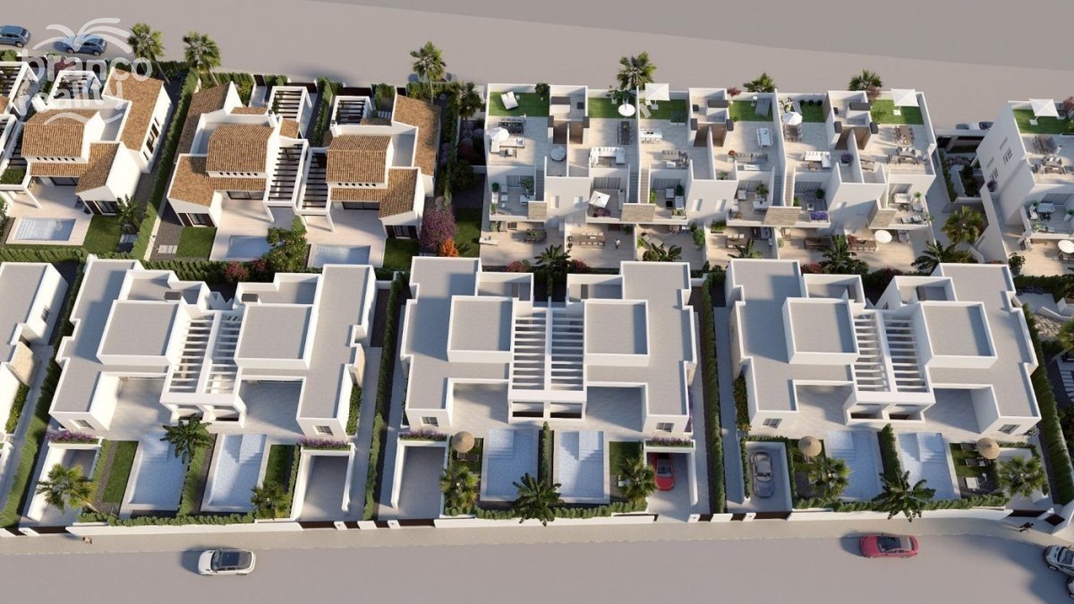NOVOSTAVBA REZIDENČNÍHO KOMPLEXU V ALGORFE Novostavba rezidenčního komplexu samostatných nebo dvojdomků a apartmánů s úžasným společným bazénem a zelenými plochami na golfovém hřišti La Finca v Algorfe. Novostavby dvojdomků se 3 ložnicemi, 2 koupelnami, prostorným obývacím pokojem s terasovými dveřmi vedoucími do zahrady, parkováním mimo ulici a otevřenou kuchyní s jídelním koutem. Každá nemovitost má vlastní bazén. Rezidenční komplex se nachází v golfovém resortu La Finca v obci Algorfa, v oblasti Vega Baja na jižní Costa Blanca. Pouhých 15 minut jízdy od písečných pláží Guardamar del Segura a pouhých 35 minut od letiště Alicante. Větší města Almoradi, Benijófar a Ciudad Quesada jsou vzdálena jen kousek jízdy autem. Torrevieja a Orihuela Costa s velkými nákupními centry jsou vzdáleny 15 minut jízdy.