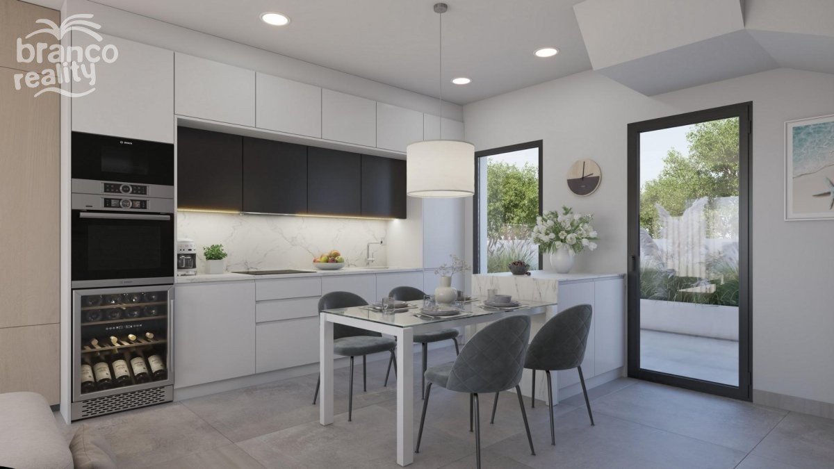 NOVOSTAVBA VILY V LOS ALCAZARES Novostavba 12 exkluzivních samostatně stojících vil, každá se soukromým bazénem a střešním soláriem, se nachází pouhých 150 m od krásné pláže Los Narejos a jen 2 minuty chůze od rušného pruhu Rio Nalon s množstvím barů a restaurací. Charakteristické domy, postavené na nejvyšší úrovni v jedné z nejlepších lokalit na Mar Menor. Všechny vily mají obytnou plochu přes 120 m2 a soukromé zahrady o rozloze přes 100 m2, s parkováním mimo ulici na pozemku a soukromým bazénem o rozměrech 6 m x 3 m s plošinou na opalování. Veškeré bílé spotřebiče jsou součástí dodávky: lednice s mrazákem, trouba, mikrovlnná trouba, sklokeramická varná deska, digestoř, myčka nádobí, pračka a malá lednička v letní kuchyni. Předinstalace klimatizace v celém domě. Vnitřní a venkovní osvětlení, bez okrasných světel. Motorizované rolety. V přízemí se nachází světlý obývací pokoj s jídelnou, otevřená kuchyň, koupelna a další místnost o rozloze 13 m2, která by mohla sloužit jako třetí ložnice, samostatná jídelna nebo garáž. Tato místnost bude mít panoramatické skleněné dveře otevírající se ven, které v případě potřeby umožní parkování uvnitř (*ačkoli tento vnitřní prostor lze využít k čemukoli, co majitelé potřebují, a bude upraven jako ložnice, v listinách bude uveden jako garáž). K dispozici je také venkovní úložný prostor a bazénové čerpadlo na zadní terase. V prvním patře se nachází hlavní ložnice s vlastní koupelnou, dvěma vestavěnými skříněmi a přímým přístupem na balkon a další dvoulůžkový pokoj s vestavěnými skříněmi a přístupem na balkon. V prvním patře se nachází také třetí rodinná koupelna. Schody z prvního patra vedou do soukromého střešního solária s letní kuchyní s dřezem, pracovní plochou a skříňkou s mini lednicí. Fantastický výhled ze solária díky jeho poloze u moře. Energeticky úsporná tepelná izolace a vysoká úroveň zvukové izolace. Sprchové zástěny ve dvou variantách. TV a telefonní zásuvky v obývacím pokoji, ložnicích a v soláriu. Vnitřní dveře, truhlářské práce a vestavěné skříně v bílé barvě. Dvojité zasklení s optimální ochranou proti slunečnímu záření. Ohřev vody pomocí elektrického, regulovatelného kotle a fotovoltaických solárních panelů o výkonu 1,5 kW. Předinstalace pro nabíječku elektromobilu. Los Alcazares je oblíbené pobřežní město, kde najdete obchody, bary, restaurace, supermarkety, lékárny, zdravotní středisko, stanoviště taxi a autobusové zastávky. Vynikající dopravní spojení s blízkostí dálnice AP7. Mezinárodní letiště Murcia je vzdálené necelou půlhodinu jízdy (40 km) a na letiště Alicante se dostanete za necelou hodinu (93 km). Prestižní Roda Golf & Beach Resort s 18jamkovým hřištěm navrženým Davem Thomasem je vzdálený pouhých 2,5 km.