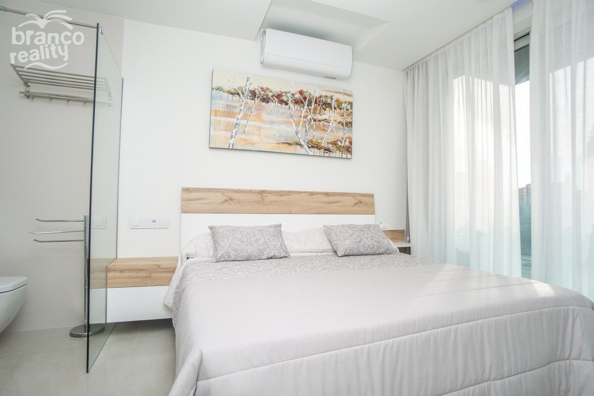 NOVOSTAVBA BYTŮ V LA CALA DE FINESTRAT Novostavba rezidenčního domu s 21 byty v La Cala de Finestrat. Tyto byty mají 1 ložnici, 2 koupelny, otevřený obývací pokoj s kuchyní a terasu. Rezidenční dům se skládá z 8 pater a má společnou zahradu s nekonečným bazénem, hydromasážní a rekreační zónou. Podzemní parkování a úložný prostor jsou volitelné za příplatek. Stavba bude provedena s použitím nejkvalitnějších materiálů a robotického systému úspory energie, kromě dalších technologií, jako je dálkové otevírání dveří. Komplex se nachází 15 minut chůze od pláže Poniente, 15 minut od nákupního centra "La Marina de Finestrat". Letiště Alicante je vzdálené 44 km.