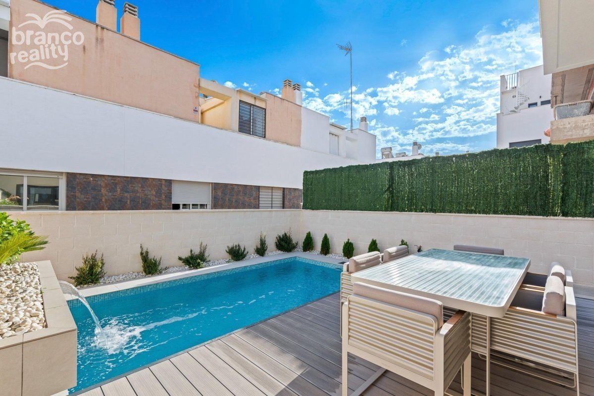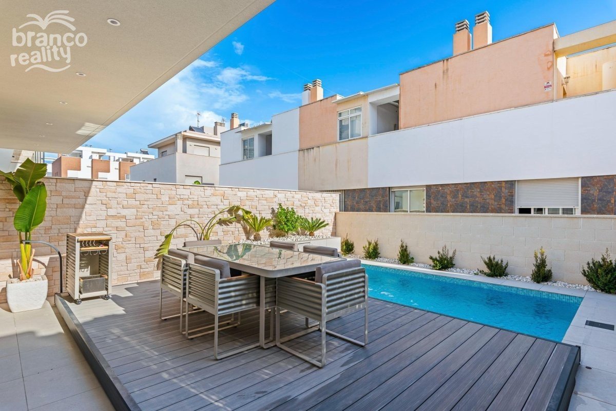 NOVOSTAVBA POLOVIČNÍCH VILL V GUARDAMAR DEL SEGURA Novostavba rezidenčního komplexu 8 polovičních vil v Guardamar del Segura. Polovodičové vily se 4 ložnicemi a 4 koupelnami se rozkládají na 3 podlažích, mají otevřenou kuchyň s jídelnou/obývacím koutem a velké zahrady a parkovací místo na pozemku. Guardamar del Segura je město ležící na jižním pobřeží Costa Blanca. S 11 kilometry přírodní pláže a rozlehlým borovým lesem je Guardamar klidné město k životu, které nabízí veškeré služby po celý rok, jako jsou restaurace, bary, obchody, banky, místa pro volný čas atd. Každou středu se v centrálních ulicích města koná trh, kam si mnoho lidí chodí kupovat produkty, jako jsou potraviny, oblečení, nábytek, zvířata atd. Je to skvělá příležitost a obyvatelé okolního města každou středu přijíždějí do Guardamaru na trh. Guardamar del Segura má velký přístav s aktivitami po celý rok, velké sportovní centrum s paddle tenisem, tenisem, fotbalem a velkým vyhřívaným bazénem, který je v provozu po celý rok. K dispozici je také knihovna s bezplatným Wi-Fi a počítači. Guardamar del Segura je vzdálený pouhých 20 km od letiště Alicante - Elche (El Altet), odkud každý den létají mnohé lety se spojením do hlavních evropských měst, a to kvůli turistické poptávce na Costa Blance.