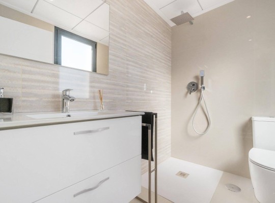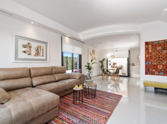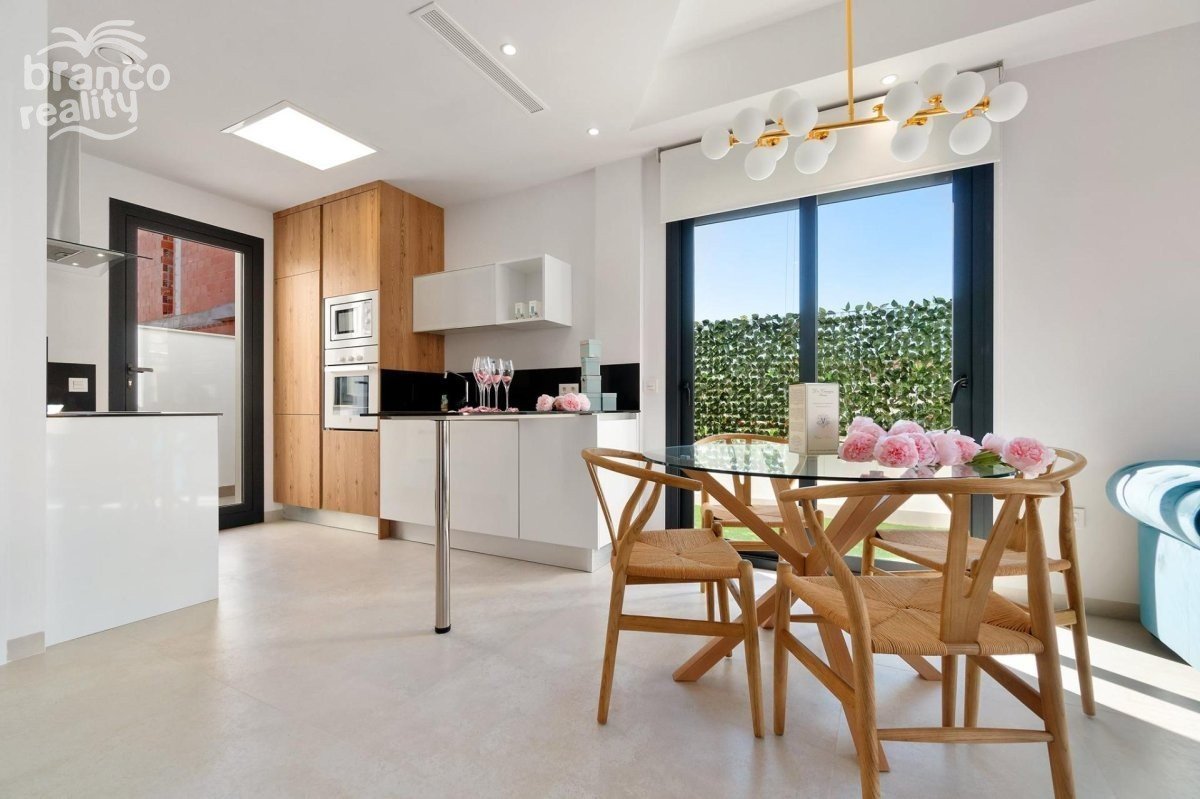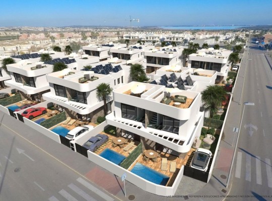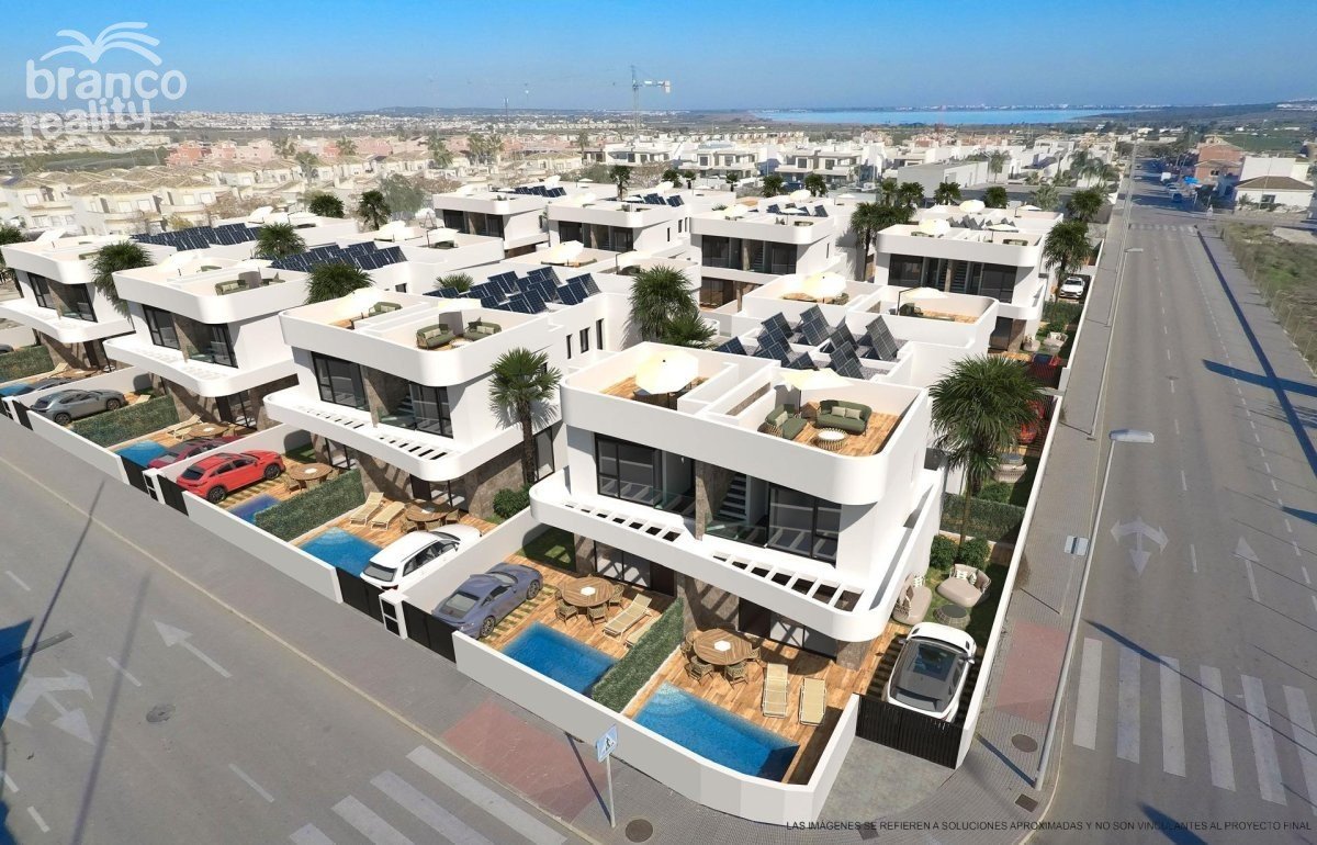 NOVOSTAVBA VILY V LOS MONTESINOS Novostavba se nachází v La Herrada (Los Montesinos), na privilegovaném místě v blízkosti nejlepších pláží Guardamaru a se všemi vymoženostmi, které nabízí velká obec, jako je Los Montesinos. Tento projekt zahrnuje 32 vil, některé dvojdomky na 2 podlažích a jiné nezávislé na jednom patře, které jsou dodávány s nejlepším vybavením, včetně solária, zástěn na vany, zahrady s umělou trávou nejvyšší kvality, dekorativních zahradních prvků a přípravy pro solární panely, elektrické zásuvky a pohonu dveří pro vozidla. Vila má 3 ložnice, 3 koupelny, otevřenou kuchyň s obývacím pokojem, vestavěné skříně a terasu. Typická vesnice Los Montesinos se nachází na strategickém místě, 10 minut jízdy od pláží a volnočasových aktivit města Torrevieja (se všemi službami velkoměsta: divadlo, 2 nemocnice, mezinárodní školy atd.), několika golfových hřišť a se snadným přístupem k dálnici A7, po které se na letiště Alicante dostanete za 20 minut. V urbanizaci se nacházejí supermarkety a bary s denními službami, což dává tomuto venkovskému a klidnému prostředí klid. Klima této oblasti zaručuje 300 slunečných dnů v roce s průměrnou teplotou 20 °C, což spolu s bohatou gastronomií a kulturní a sportovní nabídkou okolí činí z této oblasti ideální místo pro zřízení druhého rekreačního domu nebo klidné místo pro trvalé bydlení.