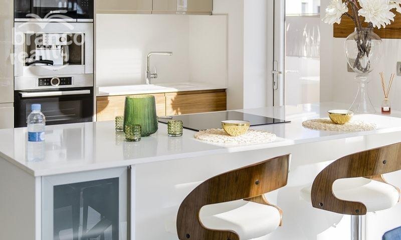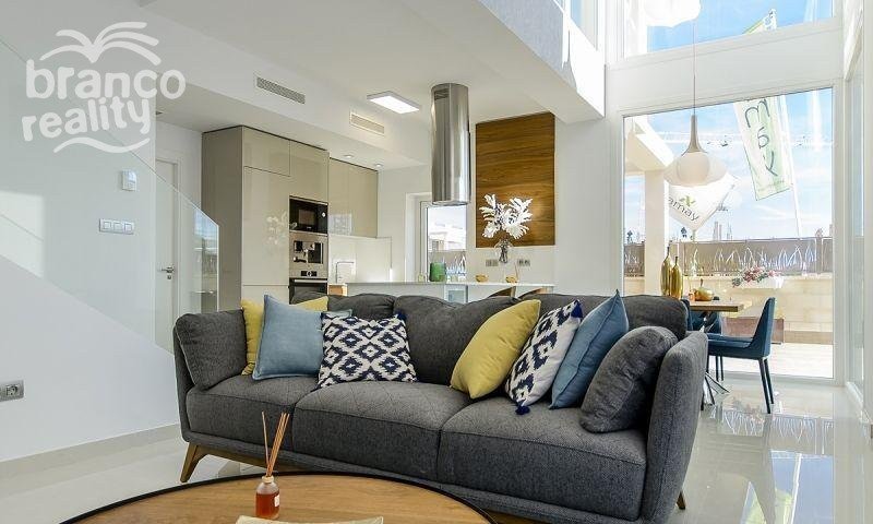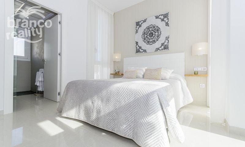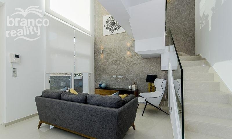 DESIGNOVÁ VILLA SE VŠÍM LUXUSEM Samostatně stojící vila se 3 ložnicemi, 3 koupelnami, orientovaná na JIH. V přízemí má verandu/pergolu o rozloze 12 m2 a na střeše solárium o rozloze 45 m2. Má terasu, soukromou zahradu a přístupové dveře k autu. Je navržena z vysoce kvalitních materiálů s využitím nejpečlivější technologie a poskytuje maximální pohodlí. Bazén o rozměrech 6,5x3,3 m s barevnými světly, designovými dlaždicemi, cihlovým schodištěm, vodopádem o výšce 1,20 m a lavičkou k sezení pod vodopádem. Tato rezidence se nachází v jedné z nejkrásnějších a nejklidnějších oblastí mezi Ciudad Quesada a Pueblo Bravo, v blízkosti přírodního parku Las Lagunas de La Mata a Torrevieja a velmi blízko pláží Guardamar a golfového hřiště La Marquesa.