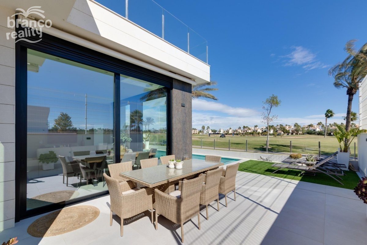NOVOSTAVBY VILY V PILAR DE LA HORADA NA GOLFOVÉM HŘIŠTĚ Novostavba 6 samostatně stojících vil v Pilar de la Horadada. Novostavby vil se rozkládají na 2 podlažích, mají 3 ložnice, 2 koupelny, toaletu pro hosty, otevřenou kuchyň s obývacím pokojem, vestavěné skříně, soukromou zahradu s bazénem a parkovací místo mimo silnici. Pilar de la Horadada je nejjižnější město a obec na pobřeží Costa Blanca v provincii Alicante. Město se nachází na hranici mezi Comunidad Valenciana a regionem Murcia. Město Pilar de la Horadada je typické španělské město ležící pouhé 2 km od pobřeží a oblíbených pláží Torre de la Horadada. V centru Pilar de la Horadada najdete veškerou občanskou vybavenost: obchody, cukrárny, banky atd. podél hlavní ulice „Calle Mayor“. Nádhernou atmosféru zažijete také v blízkosti místního kostela na „Plaza de la Iglesia“, kde se nachází několik kaváren. V Pilar de la Horadada je také dobře rozvinutá síť cyklistických a turistických stezek a nabízí se zde široká nabídka různých sportovních aktivit. 18jamkové golfové hřiště Lo Romero je jen kousek jízdy od města. Letiště Corvera (Murcia) a Alicante jsou vzdálena 40, respektive 55 minut.