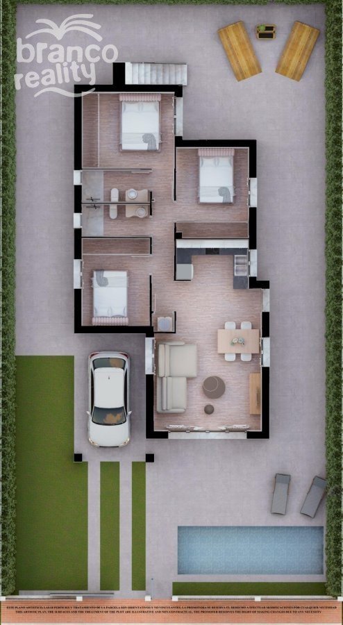 NOVOSTAVBA VILY V LOS ALCAZARES Novostavba samostatně stojící vily na velkorysém pozemku o rozloze 350 m2 v Los Alcazares. Vila se 3 ložnicemi a 2 koupelnami, otevřenou kuchyní s obývacím pokojem, vestavěnými skříněmi, soláriem, soukromou zahradou s parkovacím místem mimo ulici a místem pro bazén. Možnost soukromého bazénu za příplatek. Prostorný obývací pokoj má velké posuvné dveře na terasu. Rozsáhlé terasy vpředu i vzadu zajišťují, že se majitelé mohou opalovat po celý den. Tyto vily mají moderní vybavené kuchyně s výběrem barev kuchyňských linek a obkladů v kuchyních i koupelnách, podlah a teras. Rezidenční vila se nachází 1 km od pláže a města Los Alcázares, kde se můžete věnovat různým vodním sportům, je obklopeno několika golfovými hřišti. Město Cartagena je vzdálené necelých 15 minut jízdy autem a 30 minut od letiště Murcia Corvera.