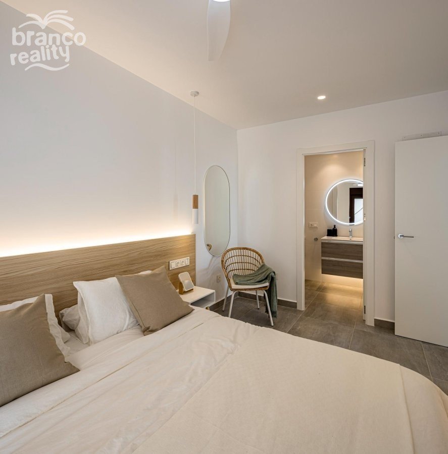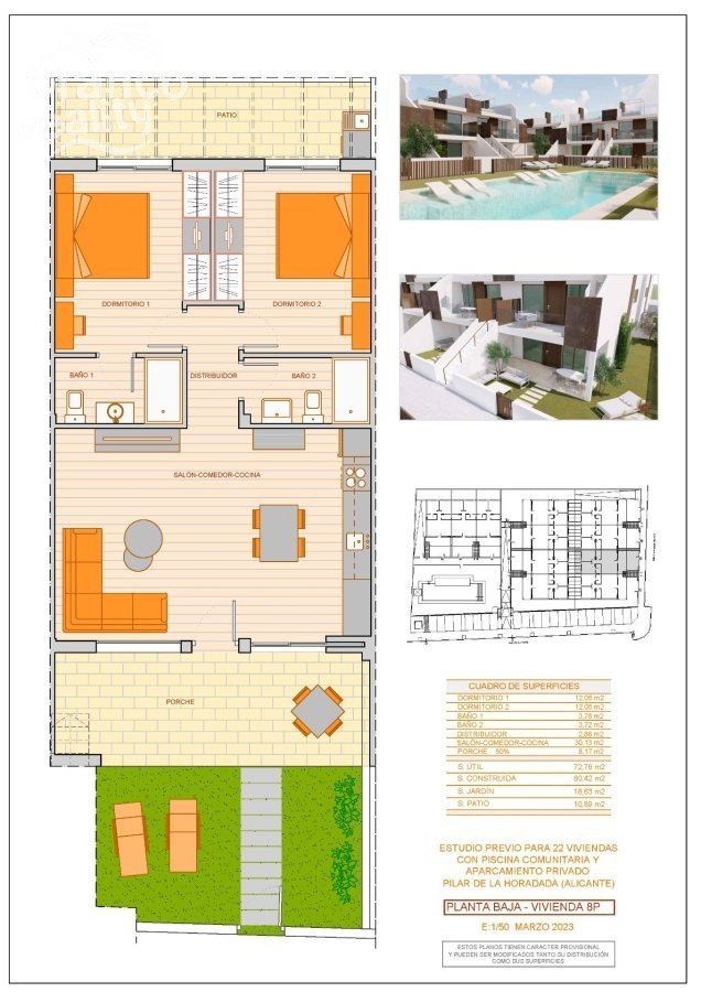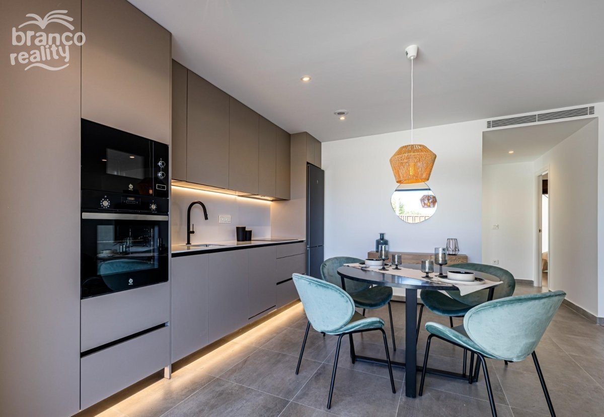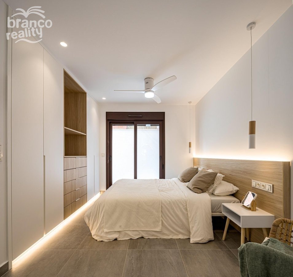NOVOSTAVBA REZIDENČNÍHO DOMU S BUNGALOVY V PILAR DE LA HORADA Novostavba exkluzivního rezidenčního komplexu skládajícího se z 22 vysoce kvalitních bungalovů s povrchovou úpravou z porcelánu v Pilar de la Horadada. Moderní bungalovy se 2 ložnicemi, 2 koupelnami, otevřenou kuchyní s obývacím pokojem a vestavěnými skříněmi. Domy v přízemí mají velkou zahradu s umělou trávou a v horním patře si můžete celoročně užívat slunce na terase a soláriu, stejně jako společný prostor s bazénem a pohodlným parkovacím místem. Pilar de la Horadada je typická španělská vesnice v nejjižnější části pobřeží Costa Blanca. Na velké hlavní ulici najdete supermarkety, spoustu obchodů, restaurací a barů a několik krásných náměstí. Krásné pláže Torre de la Horadada a Mil Palmeras s promenádou s jemným pískem jsou vzdálené pouhých 5 minut. Letiště Corvera (Murcia) a Alicante jsou vzdálena 40, respektive 55 minut.