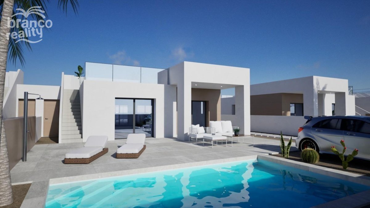 Moderní vily v La Romana, Alicante Exkluzivní novostavby v okouzlující španělské vesnici Tyto moderní novostavby vily v La Romana jsou navrženy pro ty, kteří hledají klid, pohodlí a autentický španělský životní styl. Domy se nacházejí na pozemcích o rozloze 370 m² v rezidenční čtvrti na okraji obce, jen kousek pěšky od centra města, kde si můžete vychutnat tradiční restaurace, obchody a veškeré denní služby. Obklopena vinicemi, mandlovými háji a horskou krajinou, La Romana nabízí jedinečné venkovské prostředí a zároveň je pouhých 30 minut od pobřeží. Prostorný design s moderním komfortem Každá vila nabízí 127 m² zastavěné plochy rozdělené do 3 ložnic a 2 koupelen, včetně hlavní ložnice s vlastní koupelnou. Otevřený obývací a jídelní prostor se bezproblémově integruje se zařízenou kuchyní a přímým přístupem na terasu a k soukromému bazénu. Mezi další vybavení patří úložný prostor/prádelna a soukromé parkování na pozemku. Pro ty, kteří chtějí více venkovního prostoru, je zde možnost přidat střešní solárium za příplatek. Prémiové vybavení Tyto vily jsou postaveny s kvalitními povrchovými úpravami a jsou plně vybaveny: Soukromý bazén o rozměrech 6 x 3,5 m Klimatizace s tepelným čerpadlem (instalace a jednotka v ceně) Moderní kuchyň s bílými skříňkami a žulovými deskami LED osvětlení v celém domě a na verandě Dvojité zasklení, bílé interiérové dveře a vestavěné skříně Dodání je naplánováno do 14 měsíců od rezervace, což zajišťuje zcela nový, personalizovaný domov. Ideální poloha v alicanteské krajině La Romana je tradiční španělská vesnice ve vnitrozemí Alicante, známá svou přátelskou komunitou a přírodním prostředím. Její poloha nabízí dokonalou rovnováhu mezi klidem a dostupností: Aspe – 8 km Elche – 18 km Letiště Alicante – 35 km Pláže Costa Blanca – 30 km Golfová hřiště (Font del Llop a Alenda) – 20 km Město Alicante – 32 km Váš středomořský životní styl na vás čeká Pokud hledáte klidné prostředí obklopené horami, vinicemi a okouzlujícími španělskými městečky, a přesto blízko pobřeží Středozemního moře, jsou tyto vily v La Romana perfektní volbou. Kontaktujte nás ještě dnes pro více informací a zajistěte si svůj nový domov v Alicante.
