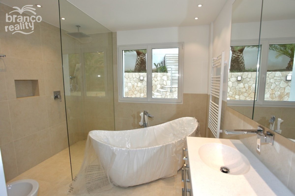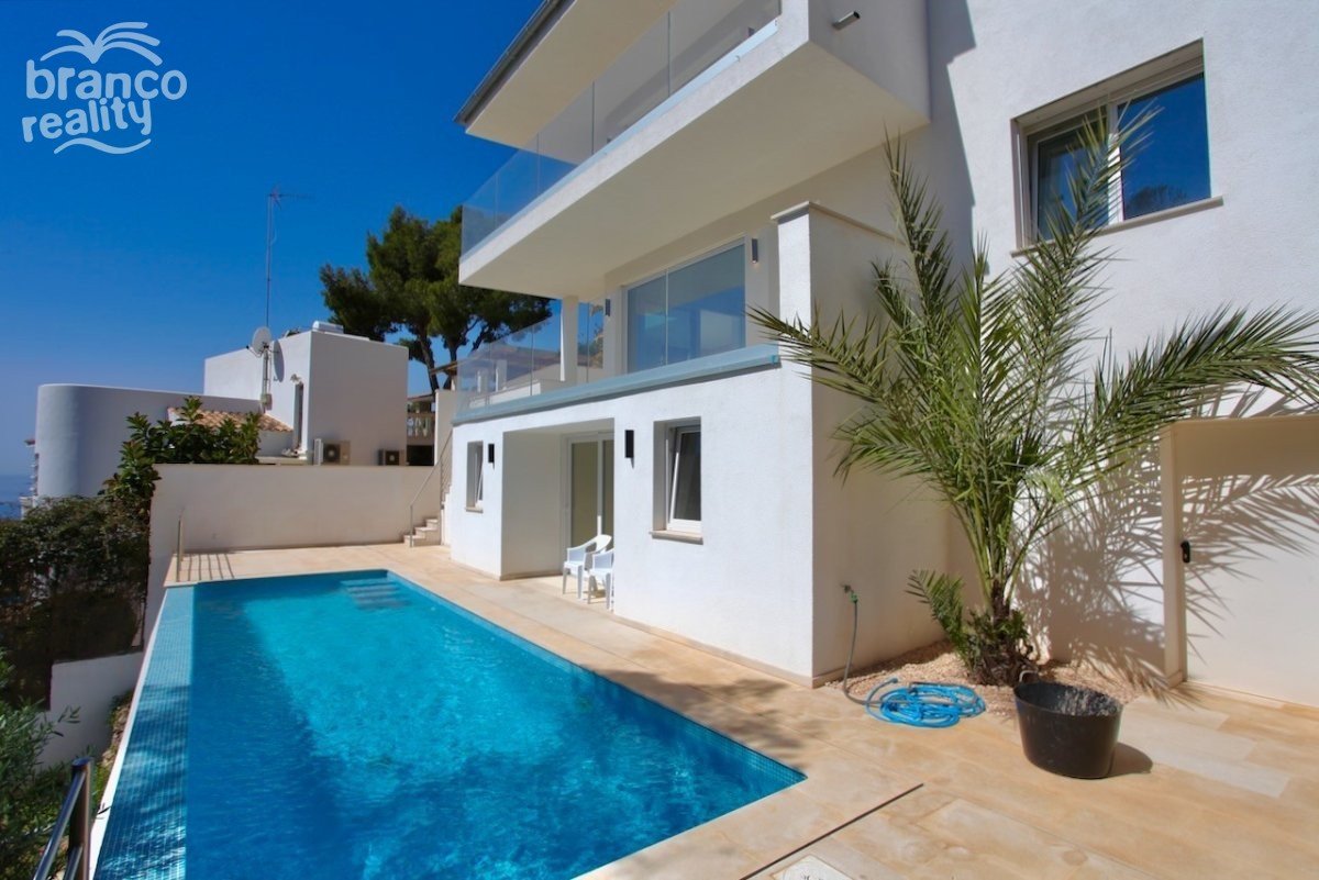 Objevte svůj vysněný domov v Costa d'en Blanes – krásně zrekonstruovanou luxusní vilu navrženou pro moderní středomořský životní styl. Tato výjimečná rodinná rezidence právě prošla kompletní rekonstrukcí, která ji proměnila v moderní mistrovské dílo se světlými interiéry a bezproblémovým propojením interiéru i exteriéru. Otevřený hlavní obývací a jídelní prostor nabízí nejmodernější kuchyň Miele, ideální pro zábavu i rodinný život. Vila nabízí čtyři elegantní ložnice, včetně úžasné hlavní ložnice s designovou koupelnou a velkorysým sprchovým koutem. V přízemí se nachází druhý obývací pokoj s přímým vstupem na prostornou terasu, doplněnou samostatnou prádelnou a šatnou pro hosty. Samostatný apartmán pro hosty s kuchyňským koutem a vlastní koupelnou zajišťuje soukromí a pohodlí pro návštěvníky. Vnější prvky: Soukromý bazén se slanou vodou a protiproudem, sluncem zalité terasy ke koupání, velká střešní terasa se skleněným zábradlím s panoramatickým výhledem na moře a pobřeží a zabezpečené parkování až pro tři vozidla. Každý detail byl zohledněn pro celoroční pohodlí: podlahové vytápění, klimatizace (vytápění/chlazení), dvojité zasklení a elektrické bezpečnostní rolety. Tato vila je víc než jen domov – je to životní styl. Kontaktujte nás ještě dnes a domluvte si soukromou prohlídku.