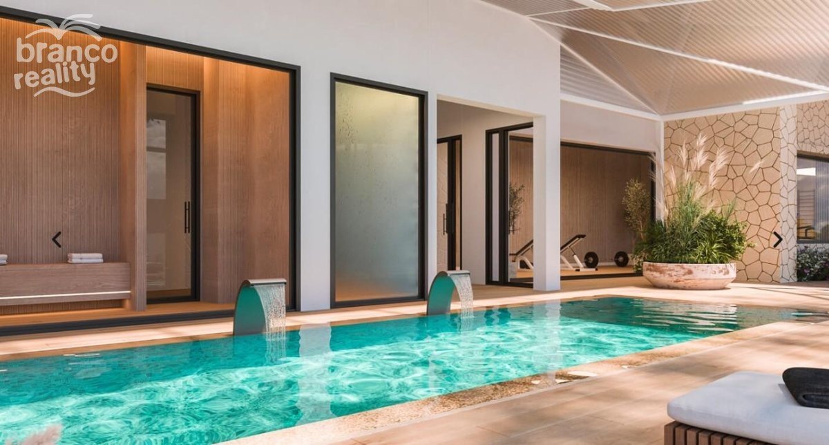 Společné prostory jsou koncipovány tak, aby dodaly rezidentům pocit resortu: dva infinity bazény s výhledem na moře, moderní fitness centrum, spa se saunou, paddle-tenisové kurty, putting green pro golfové nadšence, rozsáhlé udržované zahrady a klidné koutky pro relaxaci v přírodě. Komplex je uzavřený, chráněný, s parkováním v podzemních garážích a vlastními sklady.