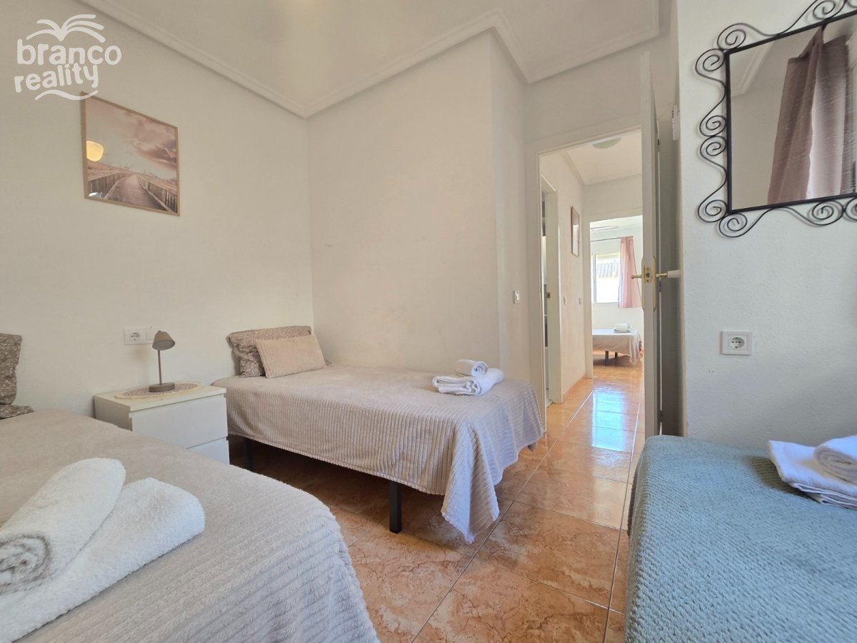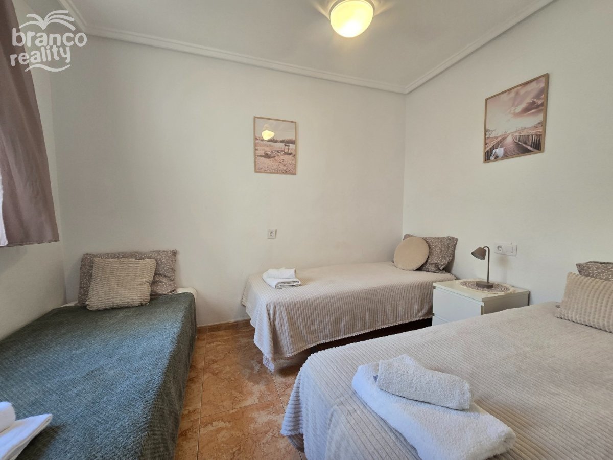 Objevte tento slunný byt nacházející se v klidné čtvrti El Limonar v Torrevieji. Tato nemovitost je ideální pro ty, kteří hledají pohodlí, soukromí a příjemné životní prostředí na Costa Blance. Byt má dvě prostorné ložnice, moderní koupelnu a otevřenou kuchyň, která je přímo propojena s útulným obývacím pokojem a jídelnou. Díky otevřenému půdorysu a velkým oknům si zde můžete užívat dostatek přirozeného světla. Jednou z největších předností této nemovitosti je prostorné soukromé solárium. Zde si můžete v klidu užívat slunce, grilovat, relaxovat s rodinou a přáteli nebo si jen odpočinout s výhledem na okolí. Nemovitost je součástí uzavřeného komplexu, který poskytuje větší bezpečnost a soukromí. V komplexu se nachází společný bazén, ideální pro ochlazení v horkých dnech. Tato nemovitost je ideální jako trvalé bydlení nebo rekreační apartmán. Nachází se kousek od obchodů, barů, restaurací a různých služeb. Krásné písečné pláže a centrum Torrevieji jsou také nedaleko. Nenechte si ujít tuto příležitost a domluvte si prohlídku ještě dnes! Cena: 127 eur/rok Poplatky za komunitu: 224 eur/rok