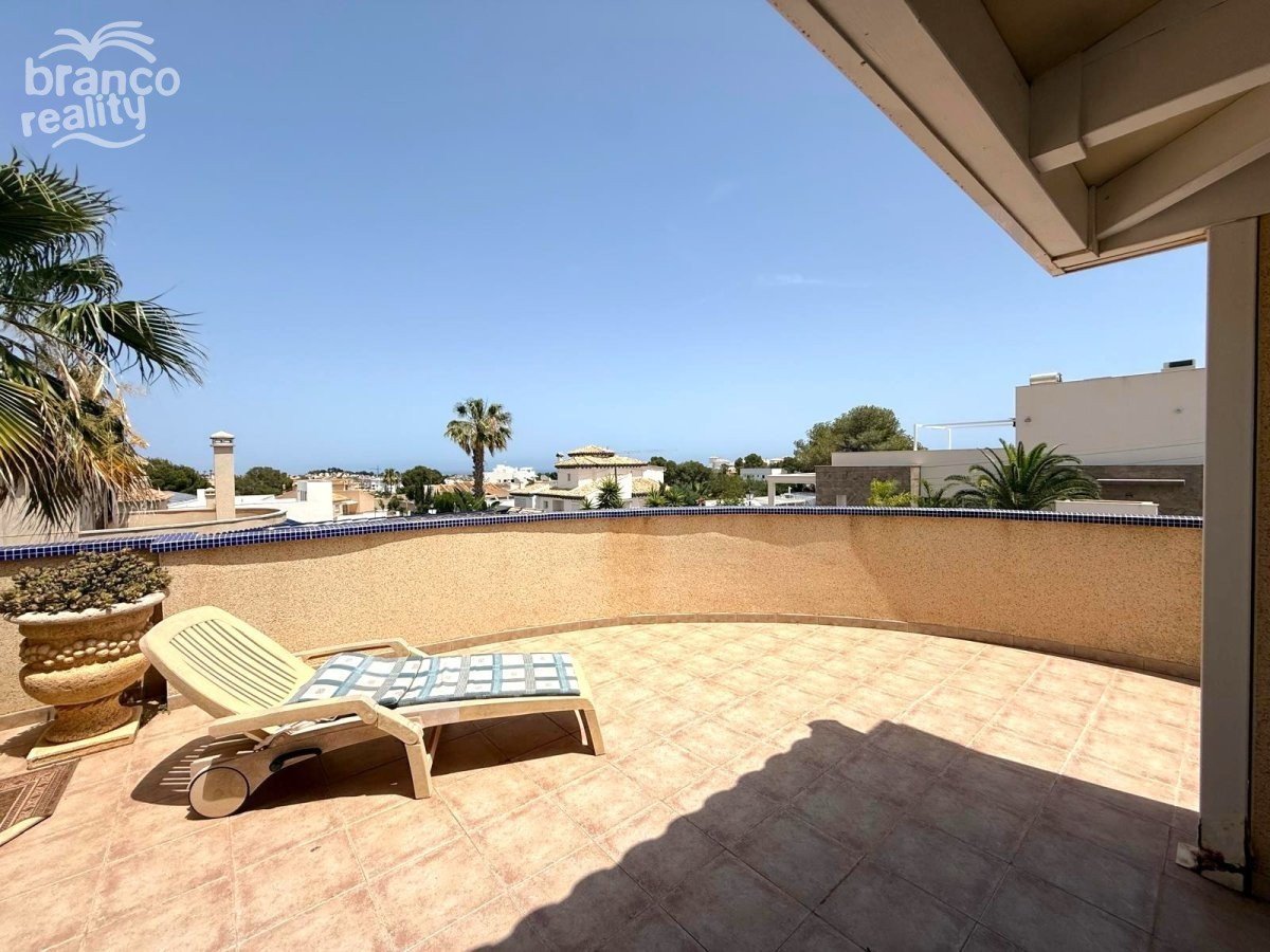 Prostorná a plně vybavená samostatně stojící vila s bazénem a částečným výhledem na moře. Nemovitost, postavená v roce 2004, byla během těchto více než 20 let průběžně modernizována a udržována svým jediným majitelem. Základní popis: Tato vila o rozloze 260 m2 na pozemku o rozloze 800 m2 má vlastní vyhřívaný bazén (cca 8 x 4 m) v perfektní poloze orientované na jih a se soukromím od sousedů. V přízemí: na vstupní halu navazuje velký obývací a jídelní prostor, samostatná kuchyň, jedna rodinná koupelna a 2 prostorné ložnice. V horním patře: hlavní ložnice s velkou šatnou a vlastní koupelnou a terasovými dveřmi vedoucími na 40 m2 velkou terasu, která je částečně zastřešena markýzami. V suterénu (65 m2): velmi prostorná garáž a víceúčelová místnost s toaletou pro hosty. Technické informace: plynové ústřední topení s radiátory ve všech místnostech, podlahové vytápění ve všech koupelnách, včetně obytné části suterénu, klimatizace ve všech místnostech, solární panely pro výrobu elektřiny, které dodávají teplou vodu pro bazén a systém ústředního topení, robotický čistič pro bazén. Nemovitost se prodává částečně zařízená a plně vybavená bílým zbožím, klimatizací atd. Cena: 495 000 €.