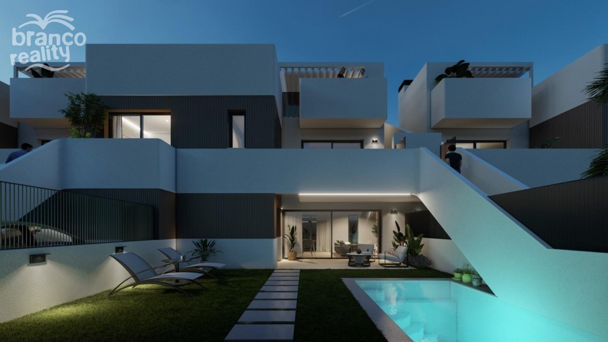 Novostavby bungalovů se soukromým bazénem v San Pedro del Pinatar Exkluzivní butikové rezidence poblíž pláže Tato limitovaná kolekce 12 nově postavených bungalovů v San Pedro del Pinatar nabízí dokonalou rovnováhu mezi moderním designem, středomořským životním stylem a bezkonkurenční polohou. Tyto domy se nacházejí pouhých 600 metrů od pláže a v docházkové vzdálenosti od obchodů, restaurací a rekreačních zařízení a jsou ideální jako rekreační útočiště, investice nebo trvalé bydlení na pobřeží Costa Cálida. San Pedro del Pinatar je okouzlující pobřežní město ležící mezi Mar Menor a Středozemním mořem, známé svými jachtařskými kluby, přírodními bahenními lázněmi v Lo Pagán a pulzující promenádou. Díky vynikajícímu spojení se město nachází pouhých 30 km od letiště Murcia–Corvera, 75 km od letiště Alicante a kousek jízdy od nákupního centra Dos Mares (5 km) a několika špičkových golfových hřišť v okruhu 10–20 km. Vyberte si mezi modelem se zahradou nebo penthousy Tento butikový projekt nabízí dvě pečlivě navržená uspořádání: Bungalovy v přízemí: Nabízejí přední terasu, soukromý bazén, prádelnu, zadní terasu a parkování na pozemku. Penthouse bungalovy: Včetně velké terasy, soukromého střešního solária s bazénem, úložného prostoru v přízemí a soukromého parkovacího místa. Oba modely zahrnují 2 ložnice a 2 koupelny, přičemž hlavní ložnice má vlastní koupelnu. Otevřený obývací a jídelní prostor je plynule propojen s plně vybavenou kuchyní, kterou umocňují velké posuvné dveře, jež zaplavují interiér přirozeným světlem. Vysoce kvalitní prvky pro pohodlí a styl Každý dům v tomto komplexu je postaven s prémiovými povrchovými úpravami, které zajišťují eleganci i praktičnost. Mezi klíčové vlastnosti patří: Plně vybavená kuchyň se spotřebiči (indukční varná deska, trouba, myčka nádobí, lednice s mrazákem) Předinstalovaná klimatizace s potrubím Vnitřní a venkovní LED osvětlení Elektrické rolety pro větší pohodlí Koupelny vybavené nábytkem, zrcadly a osvětlením Životní styl u moře Život v San Pedro del Pinatar znamená užívat si uvolněné pobřežní atmosféry se všemi moderními vymoženostmi v blízkosti. Přístav, vzdálený pouhý 1 km, je ideální pro milovníky plachtění, zatímco klidné vody Mar Menor poskytují celoroční možnosti pro koupání a vodní sporty. Rezervujte si svůj vysněný bungalov v Costa Cálida. Dodání je plánováno na polovinu roku 2027, takže je to ideální čas k zajištění vašeho nového domova u moře. Kontaktujte nás ještě dnes pro více informací nebo pro domluvení prohlídky a začněte žít středomořský životní styl, jaký si zasloužíte.