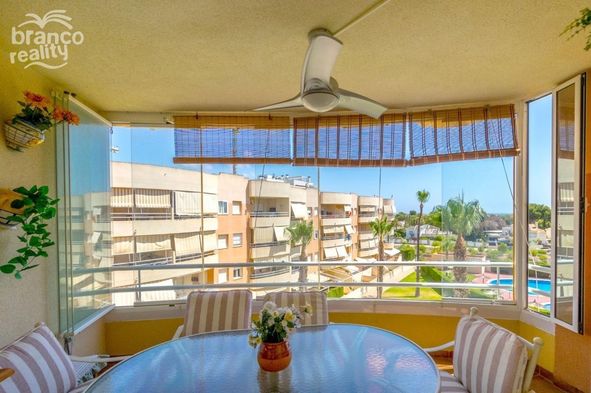 Prostorný byt v Dehesa de Campoamor, jednom z nejkrásnějších míst v Orihuela Costa. Nachází se pouhých 800 metrů od písečných pláží. O rozloze 100 m2 se skládá ze 3 ložnic a 2 koupelen. Samostatná kuchyň, velká terasa s výhledem na společný bazén a moře. Dům se prodává s parkovacím místem a úložným prostorem v podzemní garáži. Společné prostory s bazénem a zelenými plochami. Supermarket, autobusová zastávka, sportovní centrum, restaurace a bary jsou vzdáleny asi 5-10 minut chůze.