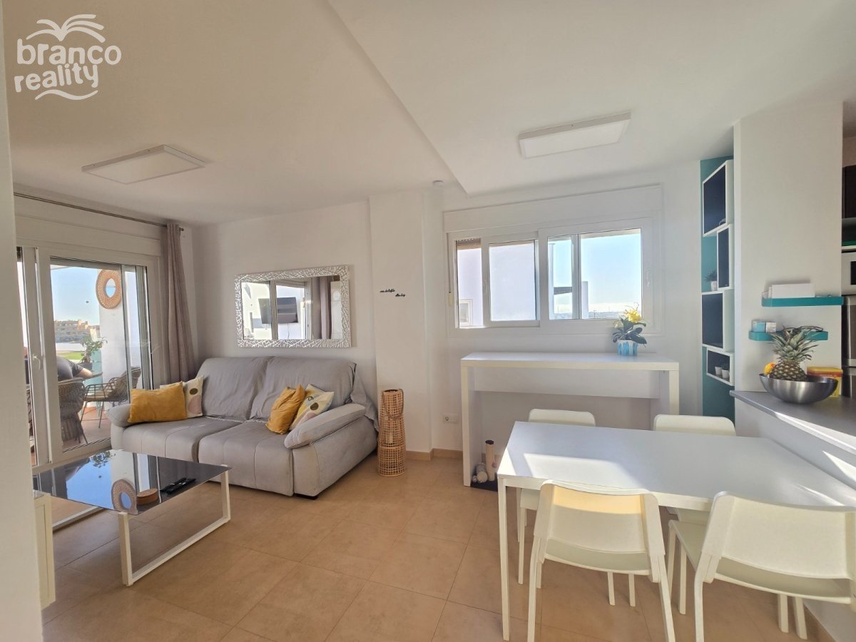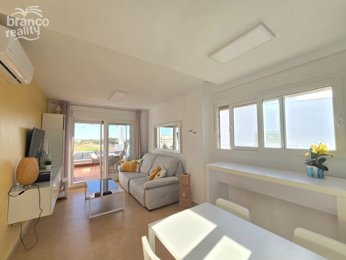 Objevte tento úžasný byt v nejvyšším patře, který se nachází uprostřed krásného golfového areálu. Užijte si klidné a bezpečné bydlení s 24/7 ostrahou, ideální pro ty, kteří hledají pohodlí, relaxaci a nádech luxusu. Tento byt ihned k nastěhování má 2 ložnice, 1 moderní koupelnu a světlou otevřenou kuchyň, která plynule přechází do obývacího prostoru. Velká posuvná okna se otevírají na prostornou soukromou terasu s panoramatickým výhledem na zelené okolí a golfové hřiště. Máte také přístup ke společnému soláriu – ideálnímu pro relaxaci a užívání si slunce. Výhody tohoto bytu: · Nejvyšší patro s fantastickým výhledem · Velká soukromá terasa · Společné solárium · 2 pohodlné ložnice a 1 koupelna · Otevřená a moderní kuchyň · Nachází se v golfovém areálu · Přístup k nejméně 13 společným bazénům · Soukromé parkovací místo v ceně · 24/7 ostraha na pozemku · Klidná lokalita, ideální pro trvalé bydlení nebo dovolenou · V docházkové vzdálenosti od několika zařízení a místních obchodů · Pouhých 25 minut od pláže Jedinečná příležitost pro golfové nadšence, ty, kteří hledají klid a pohodu, nebo investory, kteří hledají bezstarostný domov v dobře udržovaném areálu s řadou služeb. Nechte se překvapit okolím, klidem a pohodlím tohoto krásně situovaného bytu. Cena: 149 euro/rok Poplatky za komunitu: 1140 euro/rok