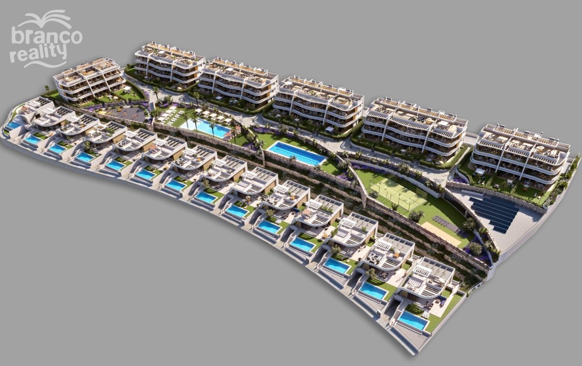 Finestrat Paradise Resort je exkluzivní rezidenční komplex sestávající ze 66 apartmánů a 14 vil, který se nachází na privilegovaném místě ve Finestratu. Jen pár minut od úžasných pláží Benidormu, obklopen nákupními centry, luxusními hotely, golfovými hřišti a širokou škálou volnočasových aktivit, je tento resort ideální pro ty, kteří hledají kvalitní život a pohodlí. Každá nemovitost byla navržena tak, aby nabízela maximální soukromí, s velkými terasami s výhledem na moře, soukromými zahradami v přízemí a solárii v horních patrech. Komplex má rozsáhlé společné prostory resortního stylu, včetně bazénů, tělocvičny, coworkingových prostor, sportovních zařízení a zelených ploch, určených pro relaxaci a užívání si přírodního prostředí. Vily Finestrat Paradise Resort jsou plně integrovány do rezidenčního komplexu a mají přístup ke všem službám a vybavení resortu. Finestrat Paradise Resort se zavázal k udržitelnosti a nabízí nemovitosti s vysokou energetickou účinností, s klasifikací A a různými ekologickými opatřeními, která nejen pečují o životní prostředí, ale také umožňují významné úspory nákladů na domácnost. Penthousy vynikají svým soláriem, ke kterému se dostanete po soukromém schodišti z hlavní terasy. Odtud si můžete vychutnat úchvatný výhled na moře a ikonické panorama Benidormu. Každý apartmán má jedno parkovací místo a jednu úložnou místnost v podzemní garáži, které jsou zahrnuty v ceně, a komplex nabízí parkovací místo pro jízdní kola. Ceny se řídí dostupností. Pro více informací nás kontaktujte.