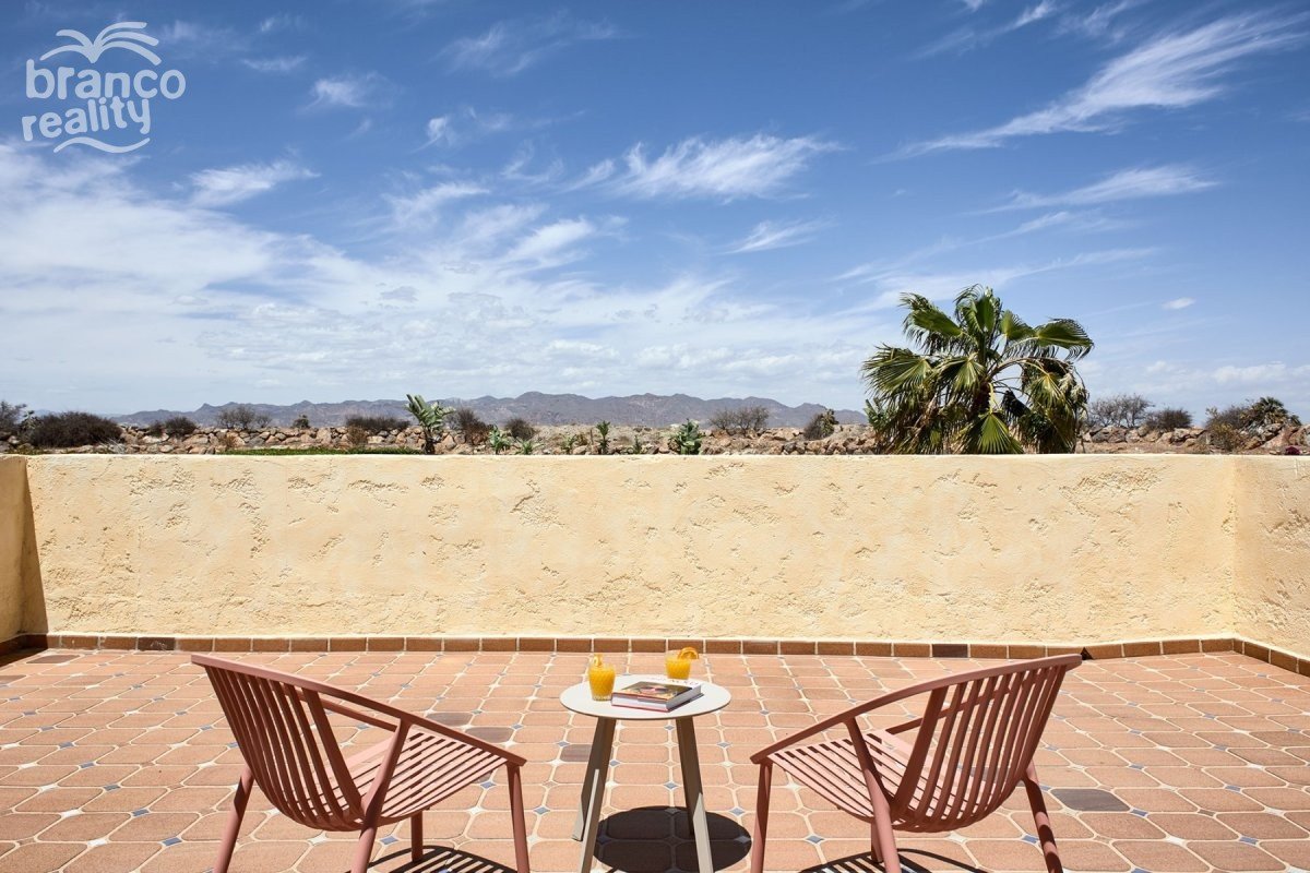 Objevte krásu a eleganci této okouzlující třípokojové vily, která se nachází v prestižním resortu Desert Springs, jediném oceňovaném rodinném resortu a pouštním golfovém hřišti v Evropě. Exteriér vily, navržený v autentickém stylu „casas del campo“ v údolí Almanzora, se vyznačuje velkými terasami a pergolami, které vzdávají hold tradiční architektuře regionu, zatímco interiér představuje elegantní, moderní domov s moderní estetikou. Tato nádherná vila nabízí prostornou hlavní ložnici s výstupem na velkou terasu, krásně upravenou soukromou zahradu a dostatek prostoru pro stolování pod širým nebem. Interiér je obložen vysoce kvalitními dlaždicemi Porcelanosa a je plně vybaven klimatizací, dvojitými okny, moderní kuchyní a bezpečnostními prvky pro klid. Tato vila se třemi prostornými ložnicemi, včetně hlavní ložnice s vlastní koupelnou, dvěma luxusními koupelnami a otevřeným obývacím a jídelním prostorem, dokonale kombinuje pohodlí a styl. Obyvatelé si budou moci užívat přístup ke společnému bazénu, soukromému střešnímu soláriu s úchvatným výhledem a krásně udržovaným společným zahradám. K nemovitosti patří také vyhrazené podzemní parkovací místo a nachází se v uzavřeném komplexu s 24hodinovou ostrahou. S celkovou podlahovou plochou 111 m² a střešní terasou o rozloze 76 m² nabízí tato vila prostor i soukromí. Vila, která kombinuje tradiční kouzlo s moderním luxusem, představuje jedinečnou příležitost užít si život v jednom z nejexkluzivnějších evropských pouštních golfových resortů. Ceny se řídí dostupností. Pro více informací nás kontaktujte.