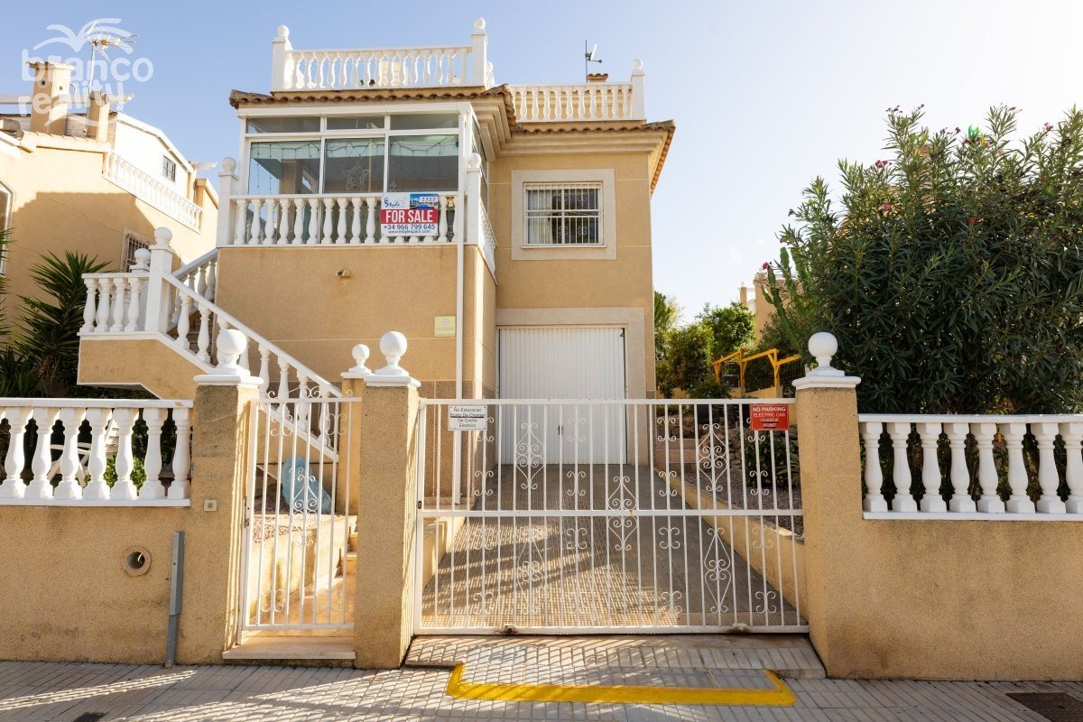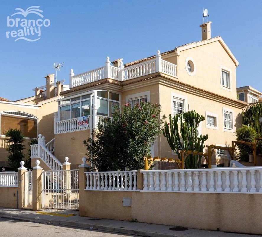Prodává se krásná samostatně stojící vila v oblasti Los Altos - La Florida, Orihuela Costa, Costa Blanca. Nabízíme vám k prodeji tuto samostatně stojící vilu se soukromou zahradou v oblasti Los Altos - La Florida. Dům se nachází ve velmi klidné oblasti, ale zároveň jen kousek jízdy od slavných golfových hřišť Villamartin, písečných pláží Orihuela Costa, které jsou každoročně oceňovány "Modrou vlajkou" za svou čistotu, největšího nákupního centra La Zenia Boulevard a mnoha dalších vymožeností, které vám zaručí pohodlný život na jižním pobřeží Costa Blanca. Nemovitost je postavena na několika úrovních a skládá se ze 3 prostorných ložnic s vestavěnými skříněmi, 2 koupelen, prostorného obývacího pokoje s jídelnou, tradiční a plně vybavené kuchyně s barem, útulného balkonu, soukromého solária a neuvěřitelně velkého suterénu, který lze přestavět na samostatný apartmán pro hosty nebo využít jako garáž/skladovací prostor. Vytápění je plynové a komunita, ve které se nachází, nabízí svým obyvatelům pěkný společný bazén. Dům je plně zařízený, což znamená, že se můžete bez problémů nastěhovat a začít si užívat své prostory od prvního dne. Zahrada se stromy a odpočinkovými zónami se stává ideálním místem pro rodinná setkání a chvíle strávené venku. Solárium vám nabízí koutek klidu pro chvíle odpočinku. Tato nemovitost je ideálním místem pro bydlení s rodinou!