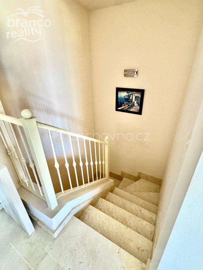 - Horní podlaží: Otevřený obývací pokoj s jídelnou, moderní americká kuchyně, samostatná toaleta a terasa o rozloze 14 m² s relaxačním výhledem na moře.