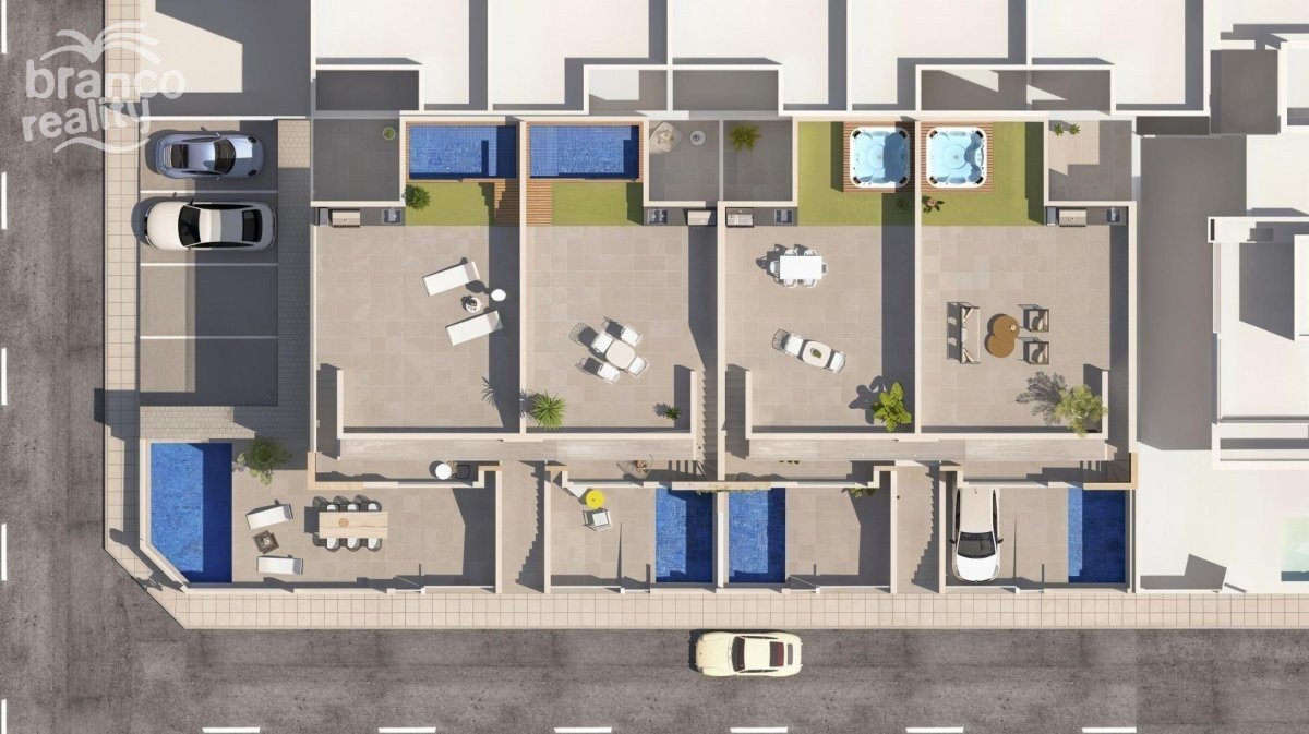 Moderní novostavby bungalovů na prodej v San Pedro del Pinatar poblíž pláže Středomořské bydlení v San Pedro del Pinatar Costa Calida Objevte exkluzivní nový komplex moderních bungalovů v San Pedro del Pinatar, jednom z nejoblíbenějších pobřežních měst na pobřeží Costa Calida. Tento komplex, nacházející se v klidné rezidenční čtvrti Las Esperanzas, nabízí ideální kombinaci pohodlí, moderního designu a blízkosti moře. San Pedro del Pinatar je známý svým krásným pobřežím, přírodními parky a uvolněným středomořským životním stylem. Město leží mezi klidnými vodami Mar Menor a Středozemního moře a nabízí obyvatelům široký výběr pláží a vodních sportů. Nedaleký regionální park Las Salinas y Arenales de San Pedro del Pinatar je chráněná přírodní oblast známá svými slanými jezery, ptačím životem a malebnými turistickými a cyklistickými stezkami. Tato lokalita poskytuje snadný přístup k supermarketům, restauracím, sportovním zařízením a golfovým hřištím a zároveň zachovává klidnou rezidenční atmosféru jen pár minut od pláže. Exkluzivní komplex stylových bungalovů Rezidenční komplex se skládá pouze z osmi pečlivě navržených domů, které nabízejí soukromí a butikový styl komunity. Nemovitosti nabízejí dvě ložnice a dvě koupelny, včetně hlavní ložnice s vlastní koupelnou. Kupující si mohou vybrat mezi bungalovy v přízemí nebo domy v horním patře se soukromými solárii. Nemovitosti v přízemí zahrnují soukromé parkovací místo na pozemku a zadní terasu. Některé jednotky nabízejí také suterén nebo soukromý bazén. Bungalovy v horním patře mají terasu a prostorné soukromé střešní solárium s letní kuchyní, ideální pro venkovní stolování a relaxaci na slunci. Vybrané jednotky zahrnují také vířivku. Tyto domy mají také soukromé parkovací místo a úložný prostor v přízemí. Moderní prvky a vysoce kvalitní provedení Každý bungalov byl navržen s ohledem na pohodlí a energetickou účinnost s použitím kvalitních materiálů a moderních instalací. Plně vybavená kuchyň se spotřebiči v ceně Předinstalace pro klimatizaci s potrubím Motorizované okenice a okna s dvojitým zasklením Hliníkové venkovní tesařské práce v tmavě šedé povrchové úpravě LED osvětlení uvnitř i vně nemovitosti Bezpečnostní vstupní dveře Vodovodní přípojka na terasách a soláriích Soukromé parkovací místo v ceně každého domu Některé domy nabízejí další luxus v podobě soukromého bazénu nebo vířivky, což poskytuje ideální prostředí pro užívání si středomořského klimatu po celý rok. Vynikající poloha v blízkosti pláží, golfového hřiště a služeb. Pláže Mar Menor 1,8 km. Nákupní centrum Dos Mares 3 km. Golfové hřiště Lo Romero 11 km. San Pedro Marina 4 km. Mezinárodní letiště Region de Murcia 39 km. Letiště Alicante Elche 78 km. Nedaleká pobřežní oblast Lo Pagán nabízí živou promenádu s restauracemi, kavárnami a volnočasovými aktivitami, což z ní činí pulzující destinaci po celý rok. Najděte si svůj nový domov na Costa Calida. Tyto moderní bungalovy nabízejí vynikající příležitost k vlastnictví stylového nového domova poblíž moře, ať už jako trvalé bydlení, rekreační útočiště nebo investiční nemovitost. Kontaktujte nás ještě dnes a získejte více informací nebo si domluvte prohlídku a objevte svůj nový domov v San Pedro del Pinatar.