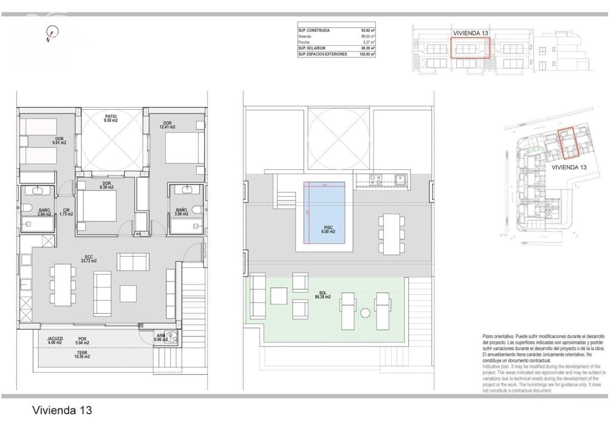 Novostavby bungalovů na prodej v Pilar de la Horadada 3 km od pláže Butikový rezidenční komplex v Pilar de la Horadada Objevte tento exkluzivní nový rezidenční komplex moderních bungalovů nacházející se v Pilar de la Horadada, nejjižnějším městě Costa Blanca. Tento butikový projekt se skládá z pouhých 14 pečlivě navržených domů se 2 nebo 3 ložnicemi a 2 koupelnami, které nabízejí ideální kombinaci pohodlí, stylu a středomořského životního stylu. Projekt se nachází v klidné rezidenční čtvrti v docházkové vzdálenosti od centra města, což obyvatelům umožňuje snadný přístup k obchodům, restauracím, supermarketům a základním službám. Pilar de la Horadada je známá svou příjemnou atmosférou, tradičním španělským šarmem a živou hlavní ulicí plnou kaváren, butiků a okouzlujících náměstí. Moderní bungalovy se soukromými venkovními prostory Domy byly navrženy tak, aby nabízely světlé interiéry a funkční uspořádání, ideální jak pro trvalé bydlení, tak pro rekreační využití. Bungalovy v přízemí mají soukromou zahradu a soukromý bazén, což vytváří ideální prostředí pro venkovní pobyt, opalování nebo zábavu s rodinou a přáteli. Bungalovy v horním patře zahrnují prostornou terasu a soukromé střešní solárium. Solárium je vybaveno letní kuchyní a za příplatek nabízí možnost přidat soukromý bazén nebo vířivku, což z něj činí ideální místo k relaxaci a zároveň k užívání si teplého středomořského klimatu a otevřeného výhledu. Ke každé nemovitosti náleží soukromé parkovací místo v rezidenčním komplexu pro větší pohodlí. Kvalitní konstrukce a moderní prvky Tyto novostavby jsou postaveny z kvalitních materiálů a moderních instalací, které zajišťují pohodlí a energetickou účinnost po celý rok. Hliníkové venkovní tesařské konstrukce s tepelnou přepážkou Plně vybavené kuchyně se spotřebiči Koupelny vybavené zrcadly a sprchovými zástěnami Vnitřní a venkovní LED osvětlení Systém ohřevu vody s energeticky úspornou aerotermální technologií Předinstalace pro klimatizaci Kombinace moderního designu a praktických prvků dělá z těchto domů vynikající volbu pro kupující, kteří hledají moderní nemovitost na Costa Blance. Vynikající poloha v blízkosti pláží a golfového hřiště Pilar de la Horadada se těší strategické poloze v blízkosti některých z nejlepších pláží a golfových hřišť v regionu. Pláž Torre de la Horadada 3 km Pláž Mil Palmeras 3 km Golfové hřiště Lo Romero 6 km Mezinárodní letiště Region de Murcia 45 km Letiště Alicante Elche 75 km Oblast nabízí také vynikající silniční spojení s blízkými pobřežními městy, přístavy a rekreačními zařízeními, což z ní činí ideální základnu pro objevování Costa Blanca a Costa Calida. Najděte si svůj nový domov na Costa Blanca Pokud hledáte moderní novostavbu bungalovu poblíž pláže s vynikajícím vybavením a fantastickou lokalitou, tento rezidenční komplex v Pilar de la Horadada je skvělou příležitostí. Kontaktujte nás ještě dnes pro více informací nebo pro domluvení prohlídky.