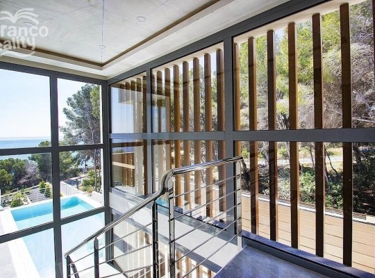 Přímo od stavitele. KLÍČ PŘIPRAVEN. Výjimečná luxusní vila na prodej s výhledem na moře. Nová stavba s neuvěřitelným výhledem na moře, která se nachází v exkluzivní oblasti La Fustera, pouhých 50 metrů od moře a orientovaná na jihovýchod. Dům se 4 ložnicemi, 5 koupelnami, zastavěná plocha 567 m2, užitná plocha 438 m2, terasa 188 m2 na rovinatém pozemku 975 m2, je rozložen do tří podlaží propojených schodištěm a výtahem pro usnadnění přístupu. V přízemí je kuchyně s ostrůvkem, prostorný obývací pokoj-jídelna se vstupem na verandu a terasu u bazénu, toaleta pro hosty, 2 ložnice s vlastní koupelnou a přímým vstupem na terasu u bazénu. V prvním patře jsou 2 ložnice s en-suite koupelnami, obě s vlastní terasou s úžasným výhledem na moře. V suterénu je strojovna, sklad, prádelna, koupelna, sauna, tělocvična a velká zasedací místnost. Dům má také moderní gril (letní kuchyň) v oblasti bazénu, verandu pro dvě vozidla a zahrady v přední části a na jedné straně domu. Dům je vyroben z vysoce kvalitních materiálů a povrchových úprav.